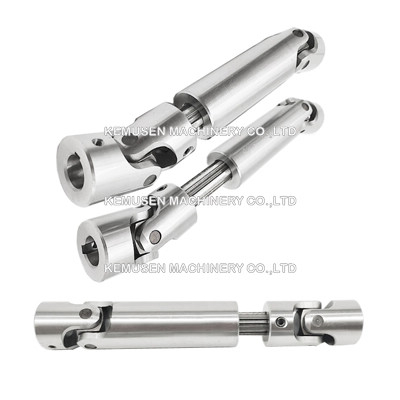 Telescopic Universal Joints are Used in Screw Jack System. Telescopic universal joints are double joints with plain bearings or needle roller bearings plus a sliding splined centre section to allow adjustment between shaft ends in worm screw jack systems. Length adjustment should be made statically without torque load. Running angles can be up to 45deg. C per joint. A range of standard models is available for fast delivery, alternatively customised models can be supplied up to 3m long.